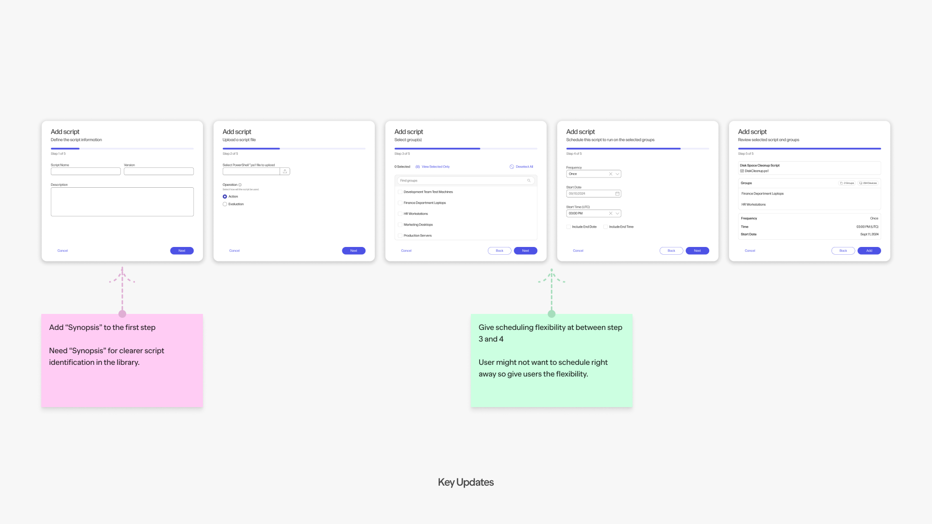 During the final stages of development, we incorporated several critical updates to refine the Scripts feature and ensure it was both user friendly and robust before the beta release. These updates were based on feedback from usability tests, internal reviews, and stakeholder input: